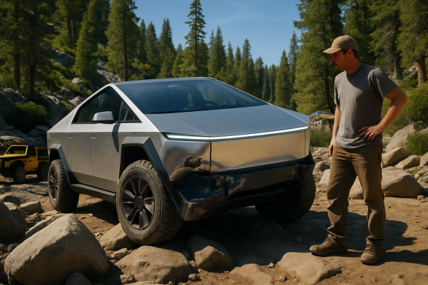 Turen fra Loon Lake til Tahoma tog omkring en uge, men næsten fire dage blev brugt på Cadillac Hill, hvor Cybertruckens styretøj brækkede, og en af de bagerste CV-aksler gik i stykker, hvilket gjorde den til lidt mere end en papirvægt.